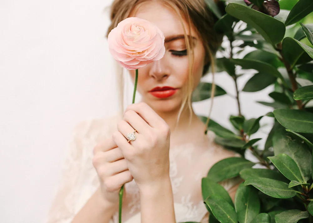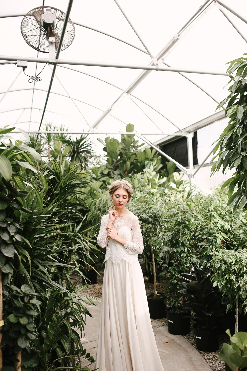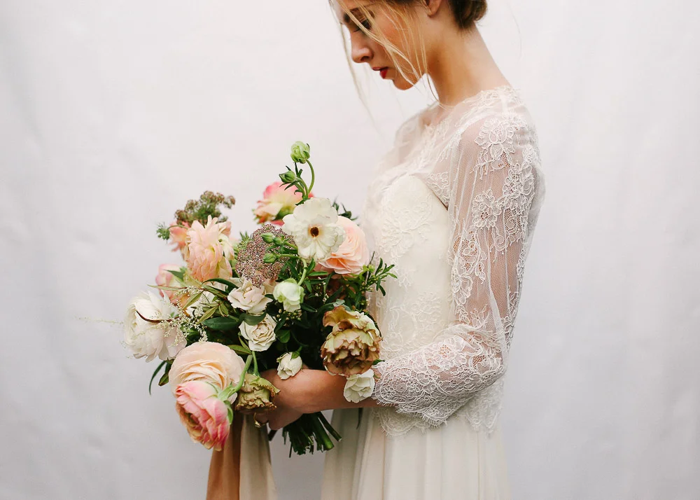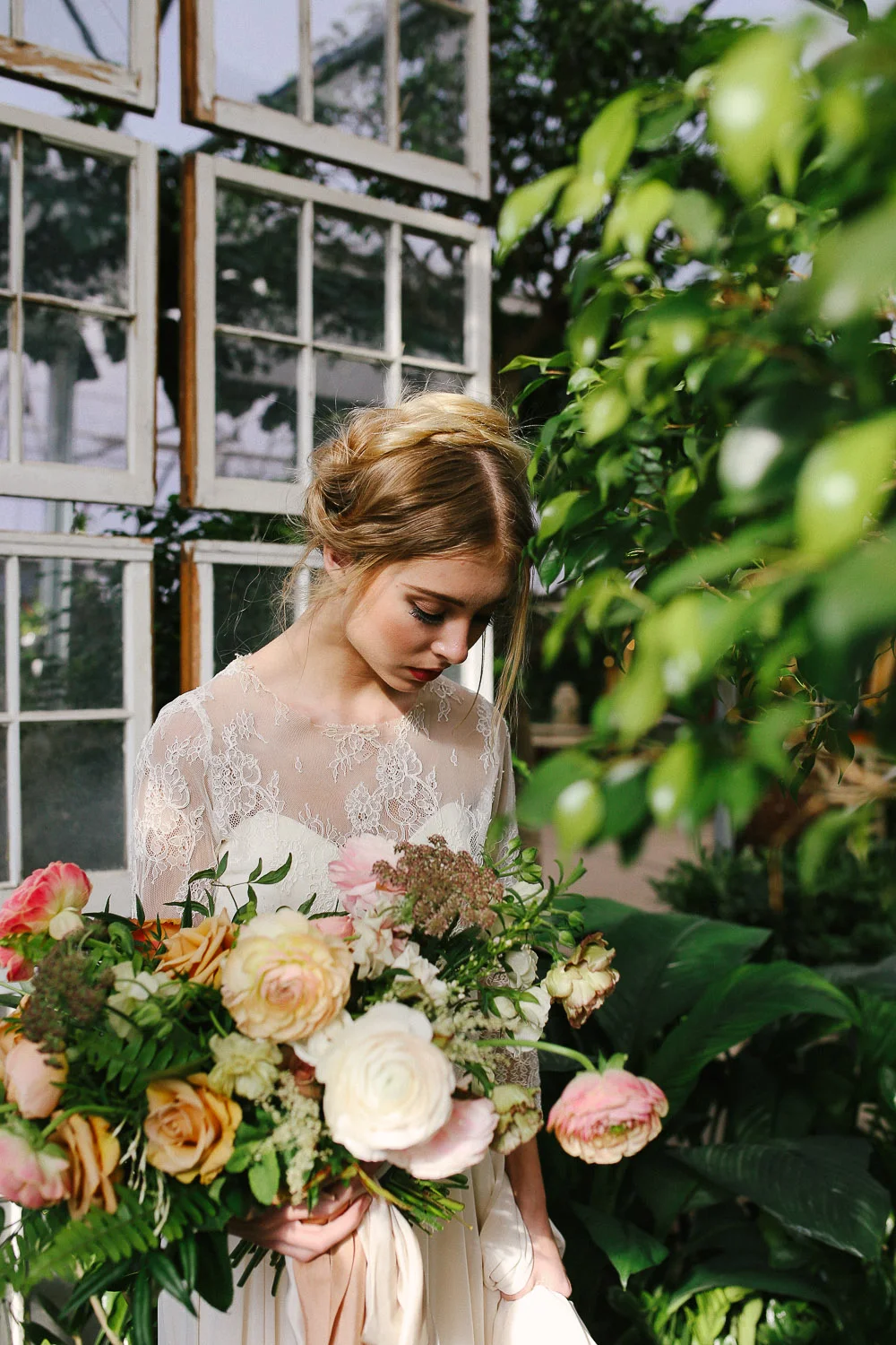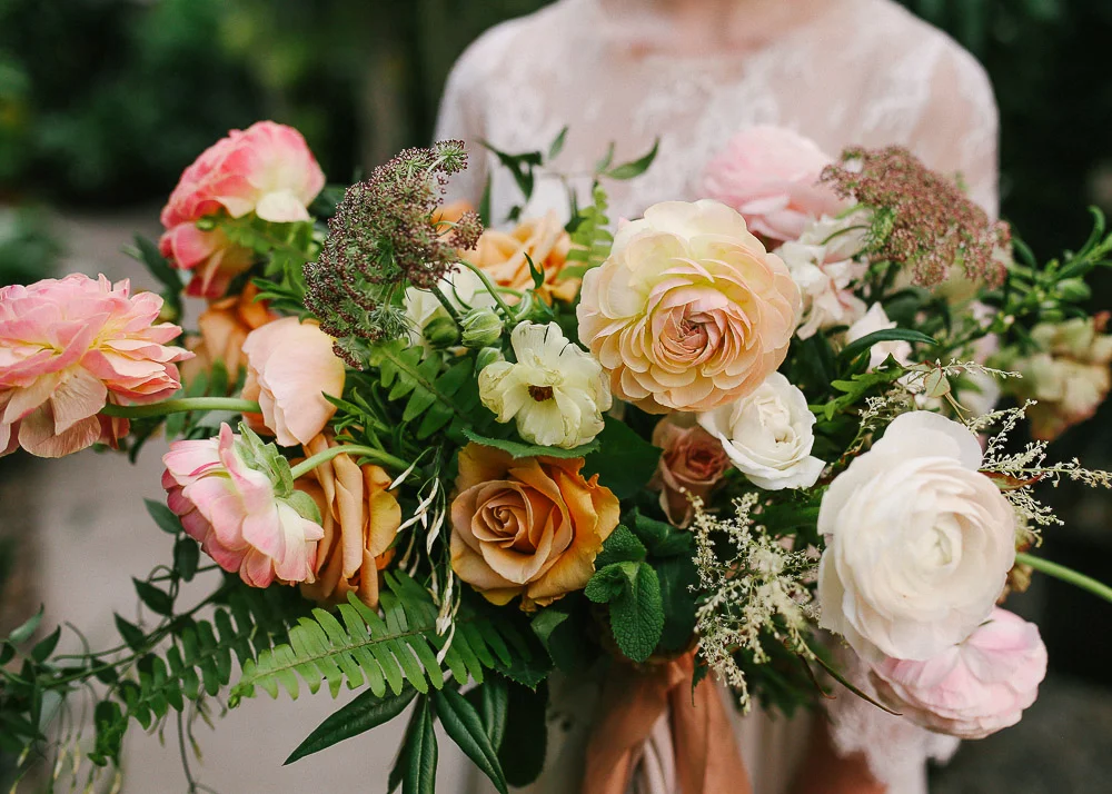 Inspired by colors of the sunset, this concept brought to life by Refine Studios and photographed by Mandi Nelson is filled with some shining star spring blooms like these huge Japanese ranunculus and tan lisianthus.